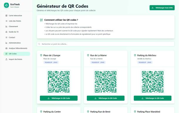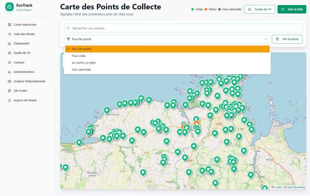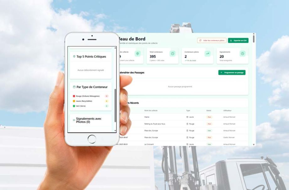 • Cartographie Intelligente : Visualisez sur une carte unique l’ensemble de vos Points d’Apport Volontaire. Gérez votre inventaire, ajoutez de nouveaux points, et accédez à la fiche d’identité de chaque conteneur.